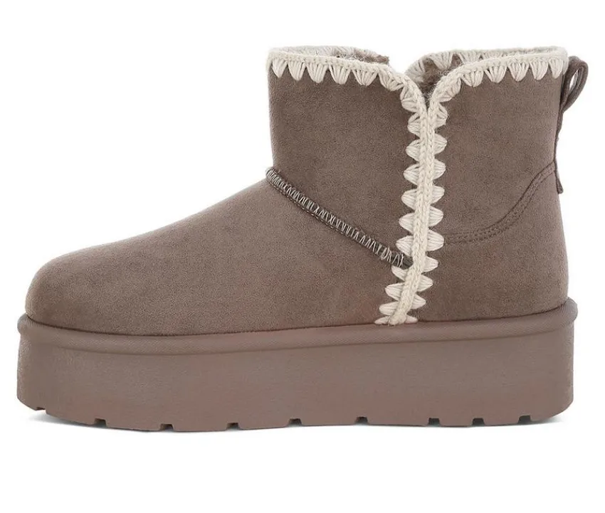 Get winter-ready in style with these plush microfiber snow boots. Designed with scalloped trim and a chunky flatform sole, they bring playful texture and cozy warmth together. The cushioned insole ensures soft support for all-day comfort in the cold.