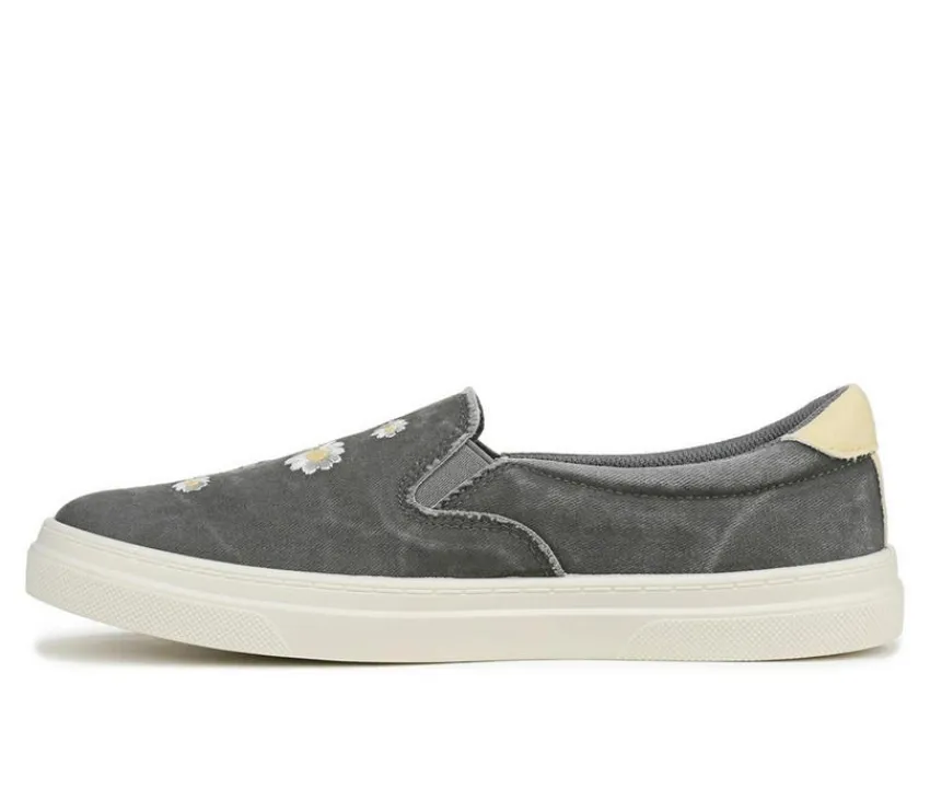 This casual sneaker brings relaxed styling with an easy, no-fuss design. A fabric or canvas upper pairs with a clean round toe for everyday wear. Stretch gore panels provide comfortable entry without laces. Embroidered detailing adds subtle personality to the silhouette. Finished with a flat sole suited for daily activity.