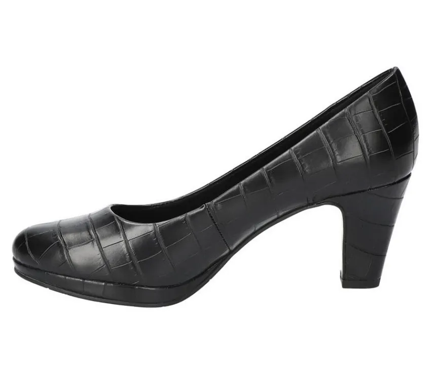 The Equinox pump offers classic elegance with everyday comfort. Designed with a smooth upper and timeless silhouette, it pairs effortlessly with both office and evening looks. A cushioned insole provides dependable support, while the tapered heel delivers flattering lift with stable balance. This versatile style is a must-have wardrobe essential.