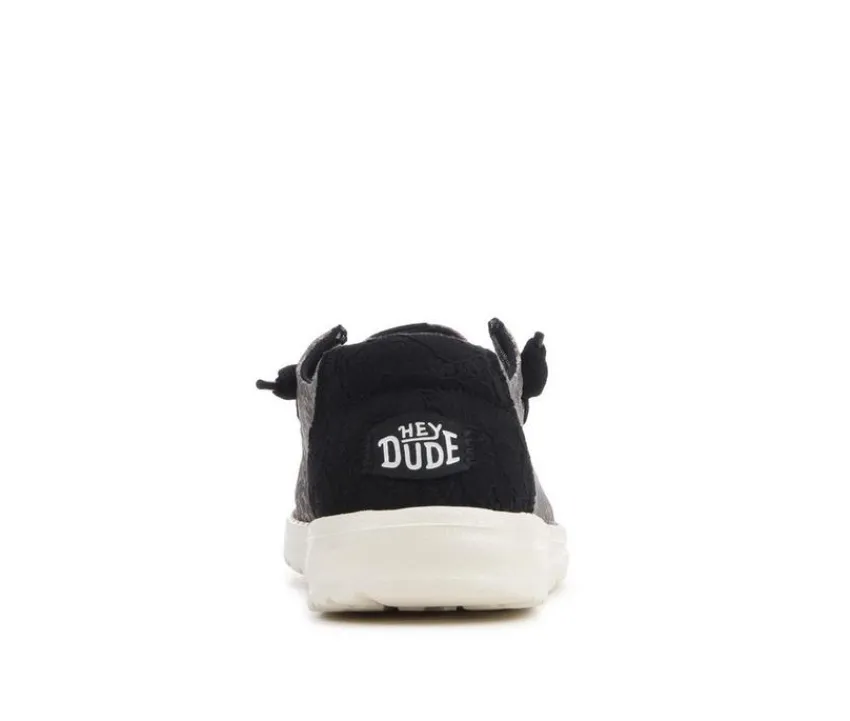 The Women’s HEYDUDE Wendy Sparkle Leopard adds shimmer and personality to a laid-back classic. Featuring a soft, lightweight upper with leopard print accents and subtle sparkle, this moc toe slip-on delivers effortless comfort. Elastic laces and a flexible outsole make this shoe perfect for casual days that need a fun twist.