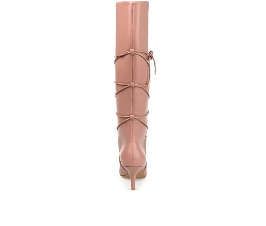 The Kaavia boots by Journee Collection are undeniable proof that pointed-toes and kitten heels have always been a stylish combo. This knee-high boot will add a chic finish to any look with its wrap-around strap detail and pointed-toe. A supportive 4 mm Tru Comfort Foam™ insole, soft vegan leather, and walkable heel finish this wide-calf style.