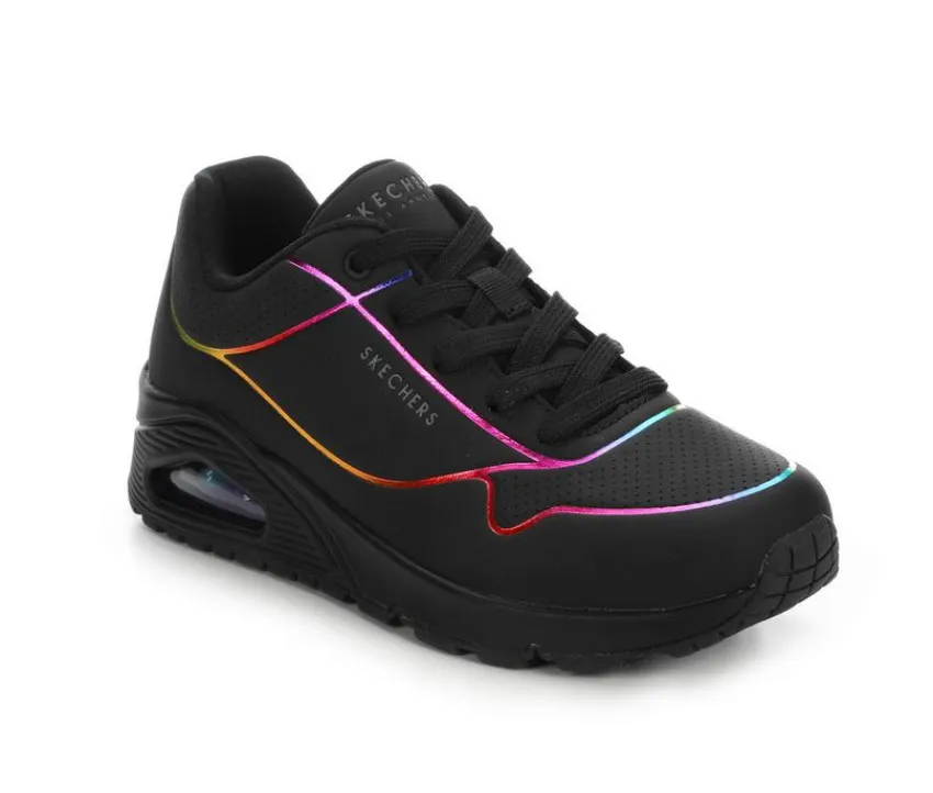 Add a splash of color to your step with the Women’s Skechers Street Uno Elc Lines Casual Sneakers, featuring a fun ombre rainbow detail that’s as vibrant as your day! With a cushioned insole and lightweight design, these sneakers keep you comfortable and stylish, whether you’re running errands or hanging out with friends. Let your shoes do the talking and brighten up every step with a pop of color and flair!