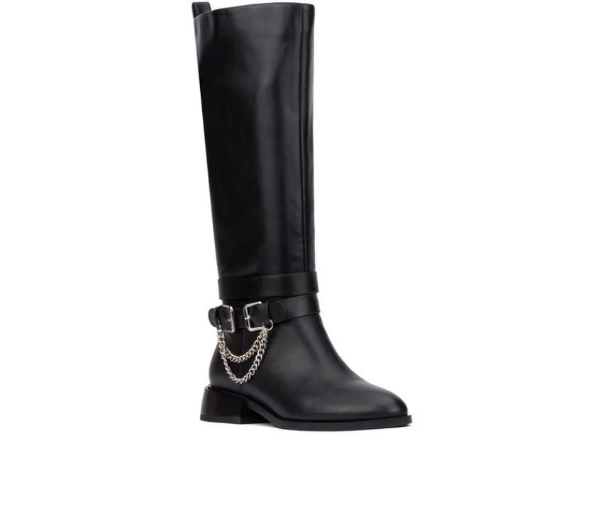 Introducing our exquisite Valora boot, a perfect blend of edgy sophistication and timeless style. Crafted with meticulous attention to detail, these boots feature a sleek silhouette with an eye-catching chain and buckle detail at the ankle. The sturdy yet stylish design ensures both comfort and durability, making them perfect for any occasion.