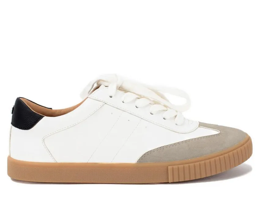 Meet Dinia, a vintage-inspired sneaker with contrasting paneling, a Yellow Box custom contoured removable insole, and a low profile outsole that offers unmatched comfort with every wear and love in each step.