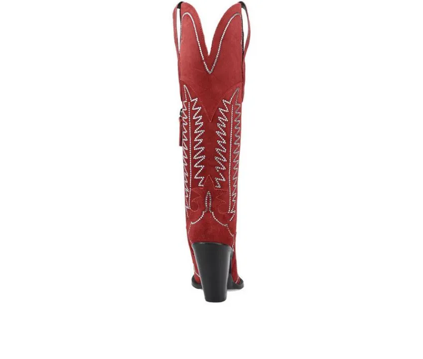 All eyes on you. This bold Western boot features a tall shaft with embroidery that commands attention. Designed for comfort with a cushioned interior, it’s finished with a sturdy block heel and pointed toe for an authentic cowgirl silhouette.