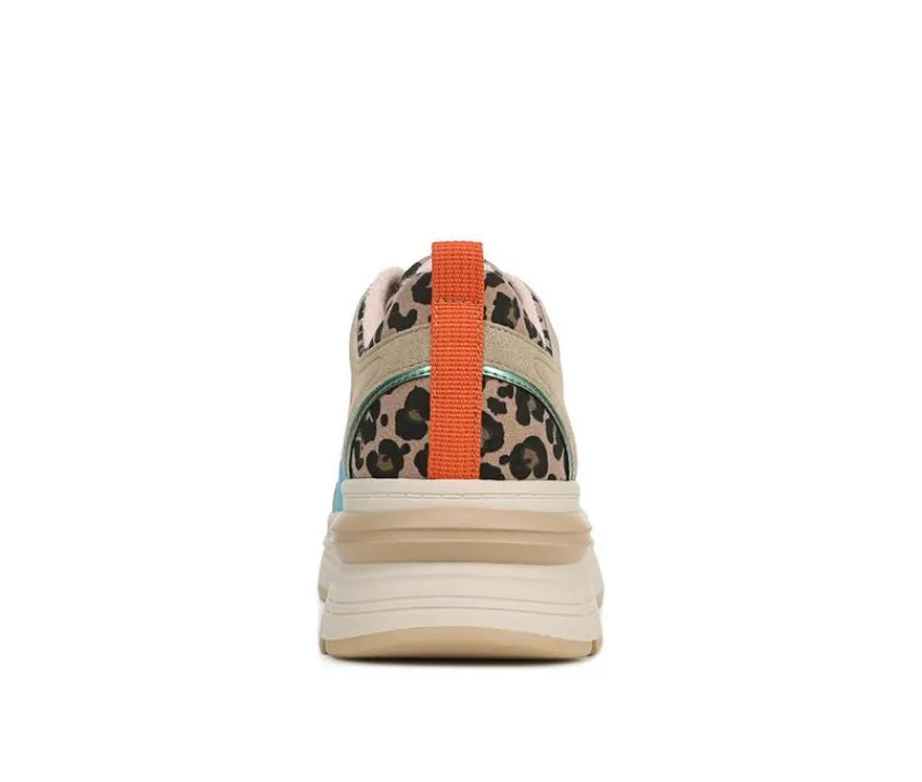 This platform sneaker delivers playful energy with a bold, layered sole. A mixed faux suede, fabric, or leather-inspired upper creates visual interest throughout the design. Lace-up styling provides a secure fit, while the round toe supports everyday wear. A pull tab at the heel adds convenience. Finished with a chunky platform sole for standout style.