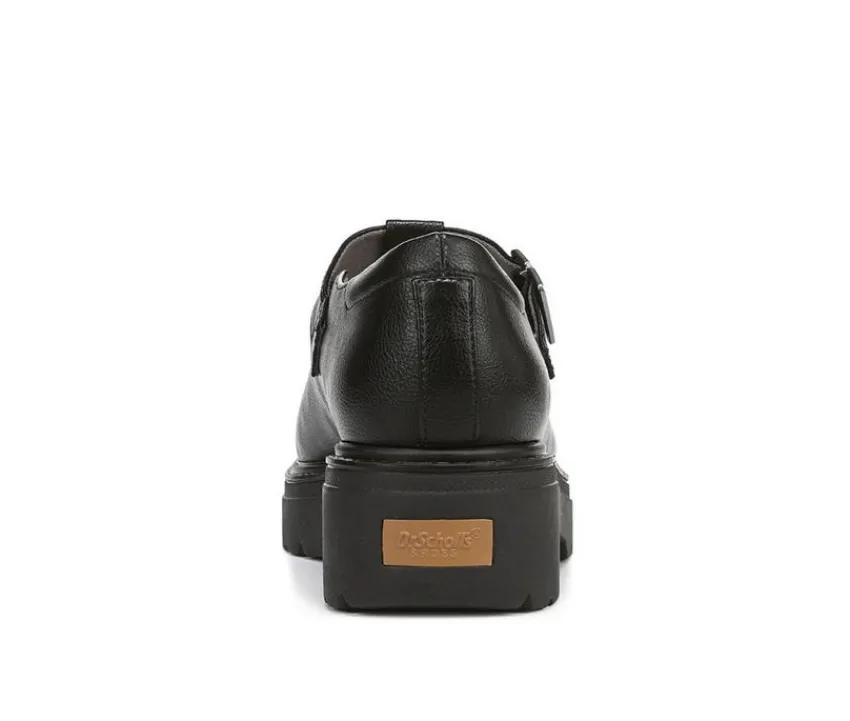 Retro charm meets modern comfort with these bold Mary Jane shoes from Dr. Scholl’s. Featuring a smooth synthetic upper with an adjustable buckle strap, they deliver a vintage-inspired look that’s as stylish as it is supportive. The cushioned insole provides all-day comfort, while the chunky lug sole adds a contemporary edge and dependable traction. Perfect for pairing with skirts, jeans, or dresses, these shoes bring a fun twist to timeless style.