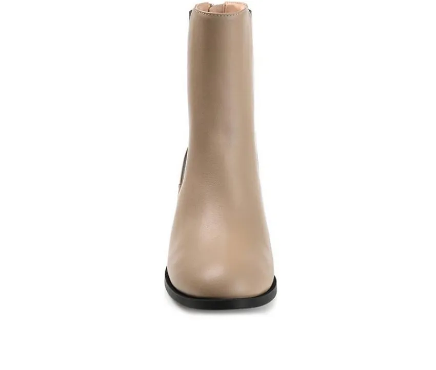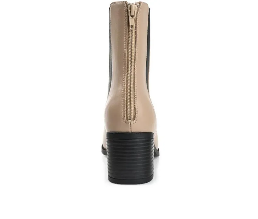 From your little black dress to your comfiest cargos, the Tayshia bootie by Journee Collection truly looks good with everything. This classic Chelsea silhouette is easy and comfortable with a back zipper entry and a 4 mm Tru Comfort Foam™ insole. Luxe vegan leather, a stacked block heel, and gore details enhance the design.