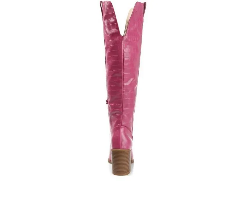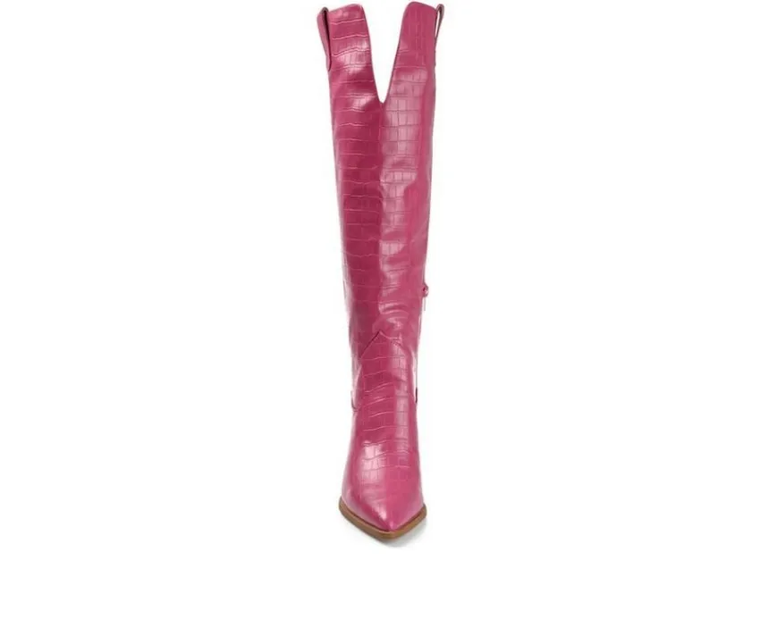 Are you a city or a country lover? Channel both with the Therese by Journee Collection! This pointed-toe boot with a block heel is the perfect way to finish your fall outfits. This look borrowed from the wild west features croc textured vegan leather and features a 4 mm Tru Comfort Foam™ insole for a comfortable fit.