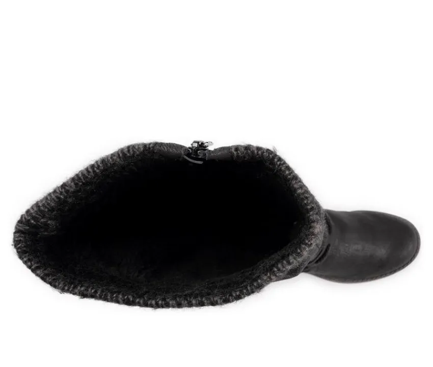 Hit the streets in LUKEES by MUK LUKS® Women’s Bianca Briana Boots. With sweet knit accents and rope detail, these knee-high boots will keep feet comfortable all day with memory foam insoles. Wipe with a damp cloth to clean, no bleach, lay flat to dry. Imported. Indoor/Outdoor Sole.100% Polyester Faux Fur Insole. 100% Polyurethane Upper. 100% Acrylic Knit. 100% Polyester Faux Fur Lining. 1.30” Block Heel. Water Resistant. Multiple color options available. Women’s Whole Sizes 6-11.