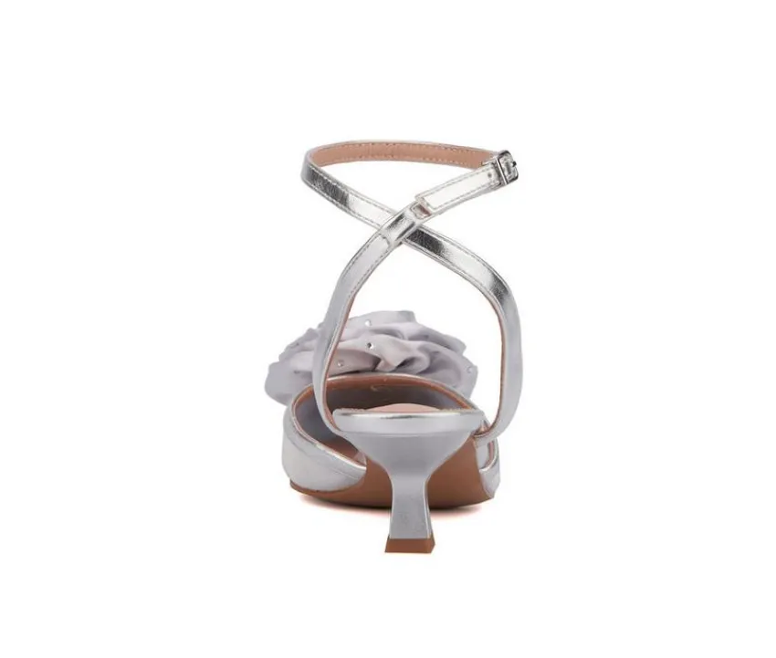 Introducing the Violetta, where elegance meets allure in a stunning display of femininity. Delicately crafted with breathable mesh, this kitten heel exudes grace and sophistication. Adorned with a satin rose detail, embellished with shimmering rhinestones, it adds a touch of glamour to every step. Perfect for enchanting evenings or special occasions, the Violetta mesh kitten heel is sure to captivate hearts and turn heads.