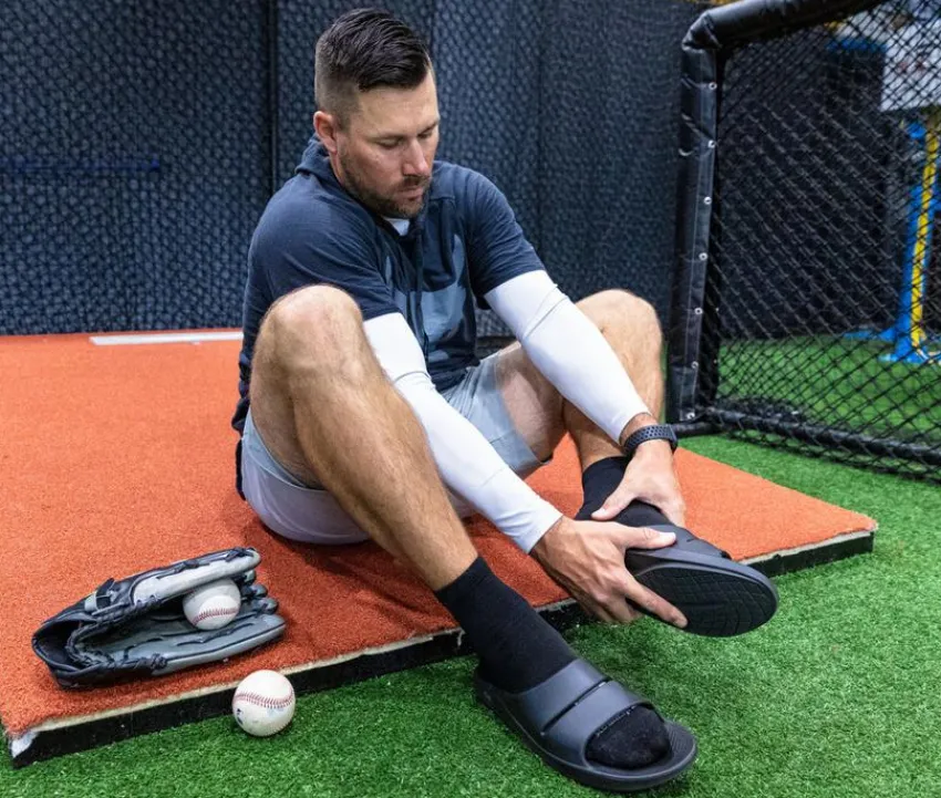 Introducing the Ooahh Slide Sandals, where comfort and recovery come together in a sleek and versatile design. These sandals are engineered to provide unparalleled support and relief for your feet, making them a must-have for post-workout recovery or everyday wear. The Ooahh Slide Sandals feature a unique OOfoam technology in the footbed that absorbs impact, cradles your arches, and promotes natural foot movement.