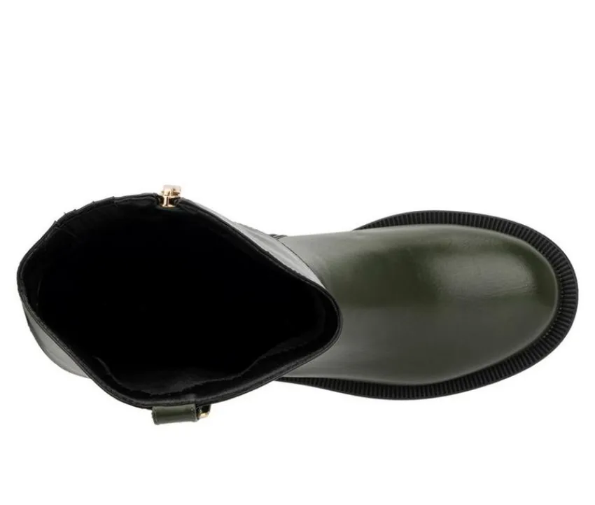 The two-toned Desiree boot is the perfect travel buddy. These easy to wear boots features a curved collar, round toe, belt accent and inner zipper.