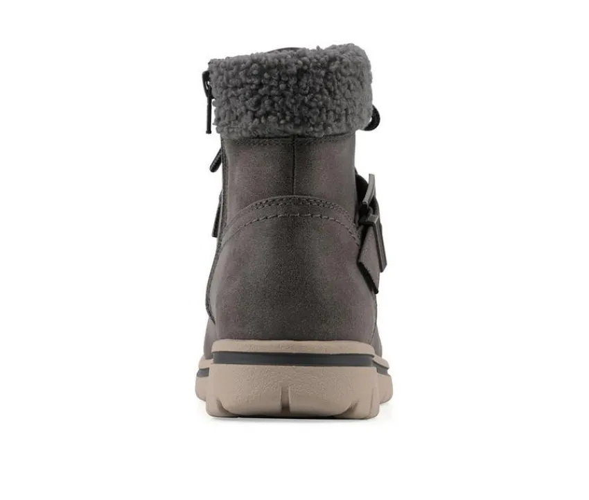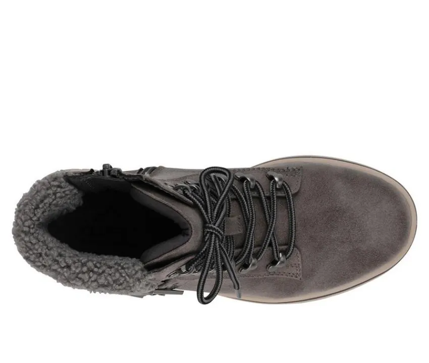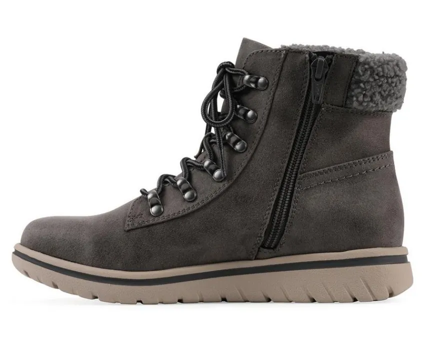 Adventure-ready yet styled for everyday wear, this city hiker blends rugged design with cozy details. A plush sherpa collar adds warmth and softness, while the lace-up front and side zipper make them easy to adjust and wear. Buckle accents bring a utility-inspired look, and the cushioned insole ensures comfort from day to night. Finished with a durable outsole, this boot keeps up with your busy lifestyle.