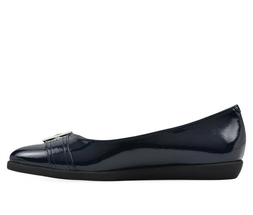Sophisticated yet understated, this almond-toe ballet flat offers timeless elegance for work or dress occasions. A polished buckle accent adds a refined finish, while the cushioned insole provides comfort all day long. The slip-on design makes them simple to wear, while the sleek profile transitions effortlessly across settings. Stylish and practical, this flat balances fashion with function.