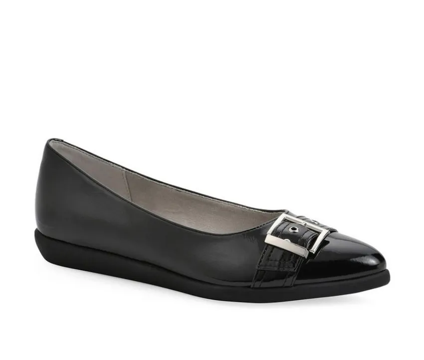 Sophisticated yet understated, this almond-toe ballet flat offers timeless elegance for work or dress occasions. A polished buckle accent adds a refined finish, while the cushioned insole provides comfort all day long. The slip-on design makes them simple to wear, while the sleek profile transitions effortlessly across settings. Stylish and practical, this flat balances fashion with function.