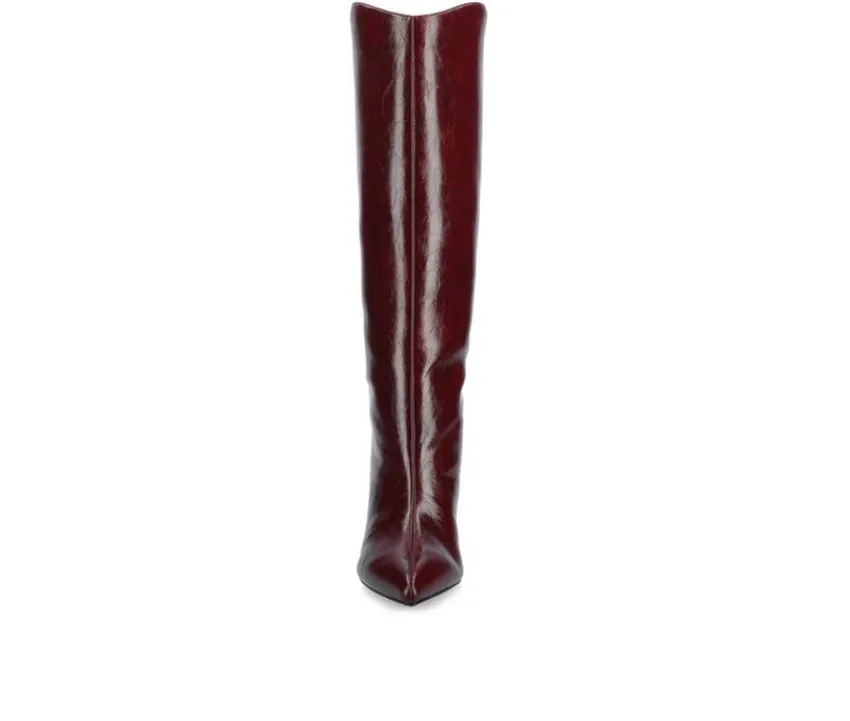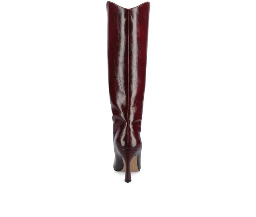 Introducing the Rehela boot by Journee Collection, the perfect blend of elegance and comfort. Crafted with vegan leather, these boots feature a stylish stiletto heel and pointed-toe design, adding sophistication to any outfit. The 4 mm Tru Comfort Foam™ insole ensures a cushioned step, while the pull-on style and center seam detail offer convenience and a sleek look. Step out in confidence with the Rehela boot.