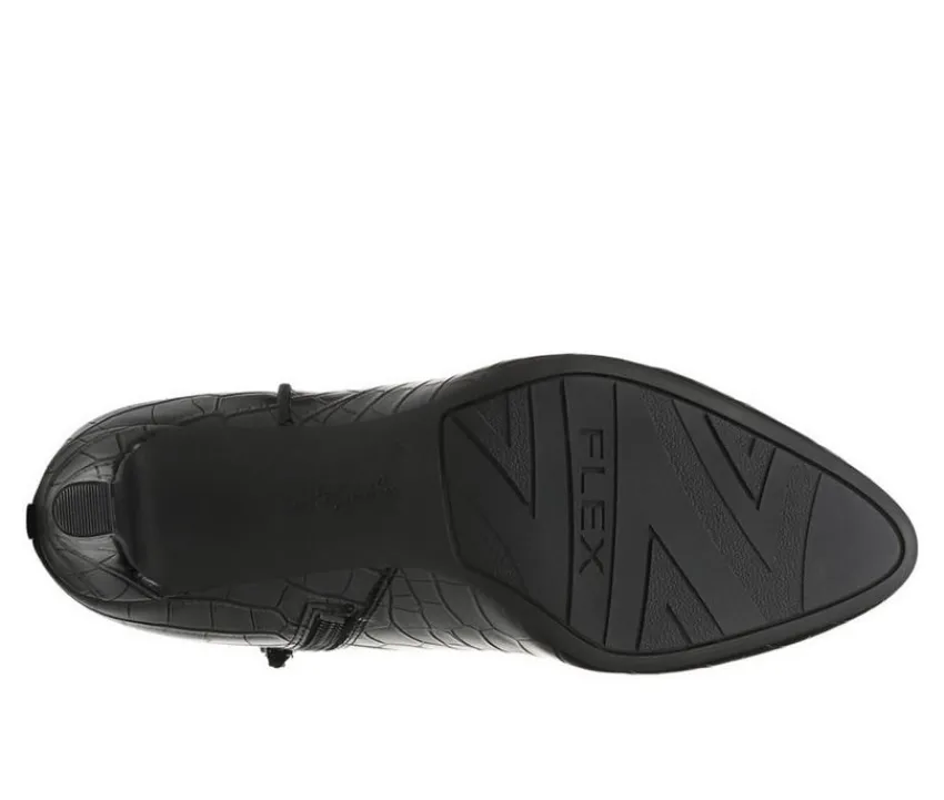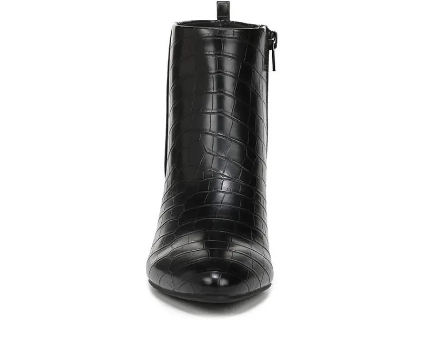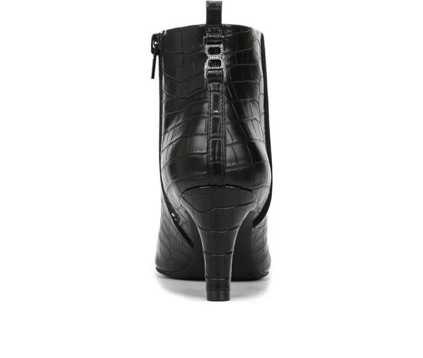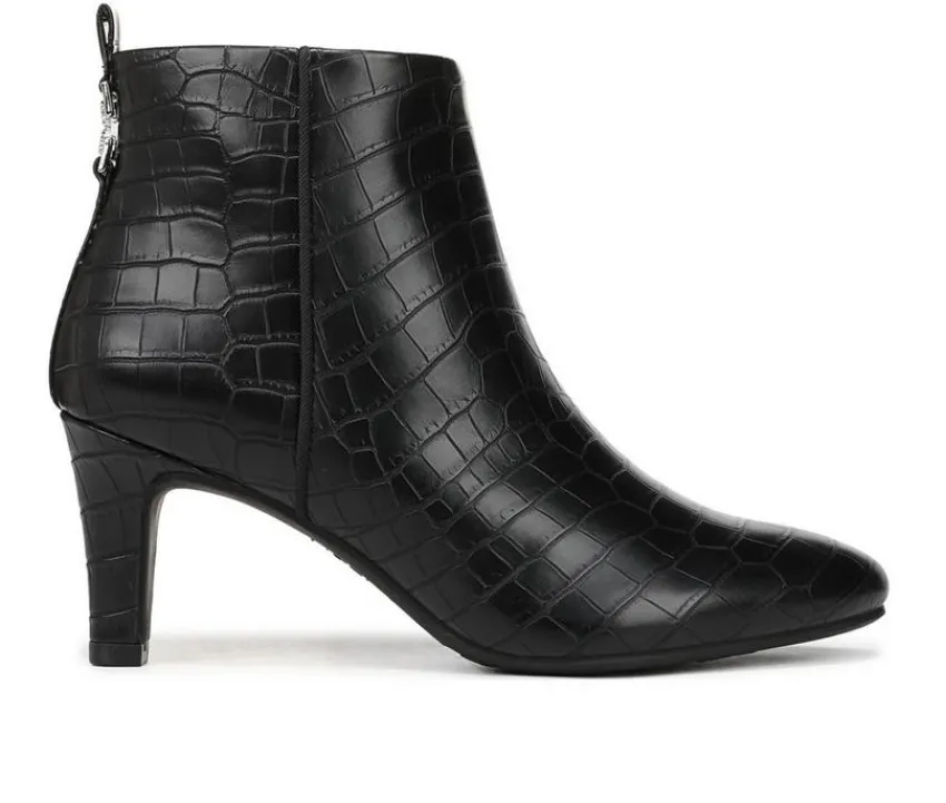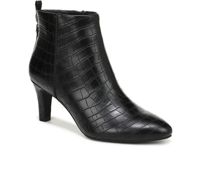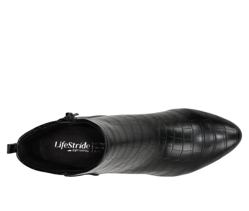 Chic and sophisticated, these ankle booties from LifeStride bring a touch of elegance to your everyday look. Designed with a crocodile-textured synthetic upper, they add instant polish to any outfit. The back zipper allows for easy on and off, while the cushioned insole provides the comfort you need for all-day wear. Finished with a sleek tapered heel, these booties pair effortlessly with skirts, jeans, or workwear for a timeless, versatile style.