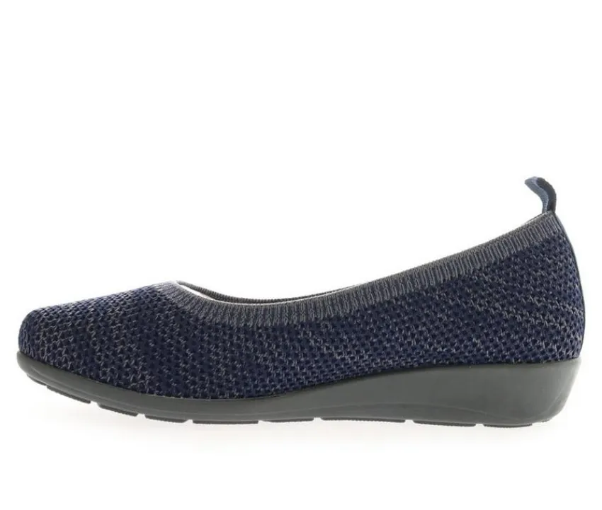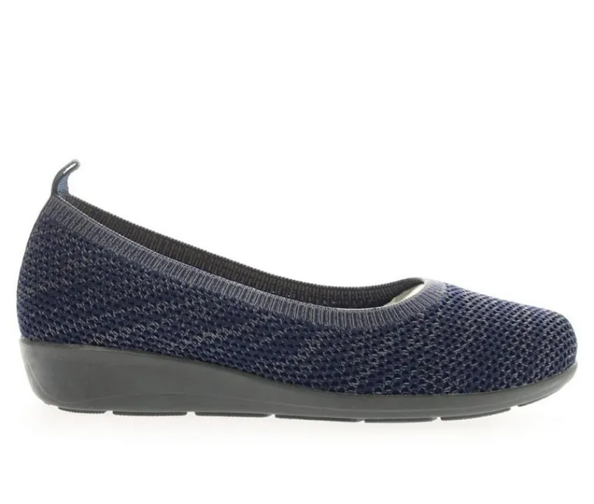 Precision knit upper with variable stretch for fit. Removable PU insole. Wedge heel TPR outsole for cushioned, durable wear. Removable footbed.