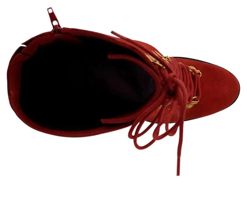 Handcrafted in high-quality genuine leather, this pair of high heeled calf boot has antique metal eyelets which add charm of vintage. The side zipper opening makes it a comfy pair to wear.