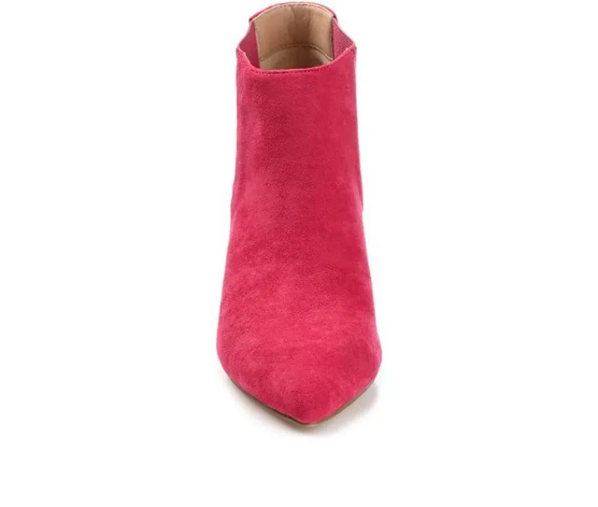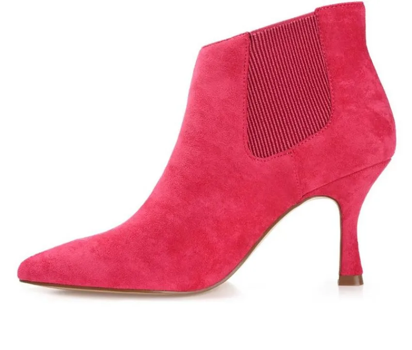 So subtle and oh-so-chic! We proudly present the Elitta by Journee Collection. This pointed-toe bootie is sure to become a favorite with its hourglass heel and Chelsea stretch details. Soft vegan suede shapes the look and a 4 mm Tru Comfort Foam™ insole offers all-day support.