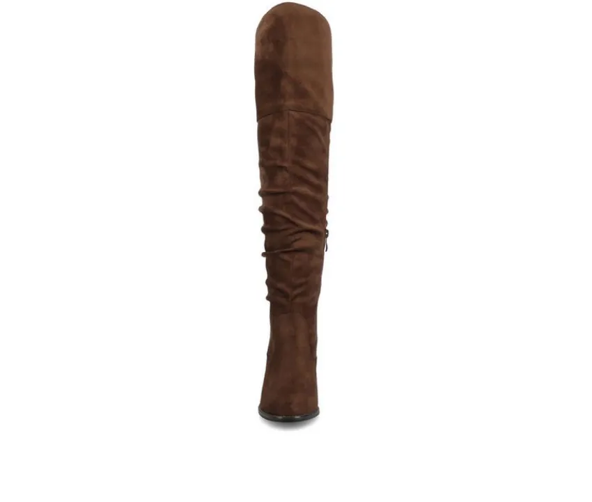 The Kaison is a ruched over-the-knee boots by Journee Collection is constructed with soft faux suede uppers that rise over the knees with raised vamps that create stylish detail. A rounded toe and stacked chunky high-heels finish the design to give you the perfect look for your day.
