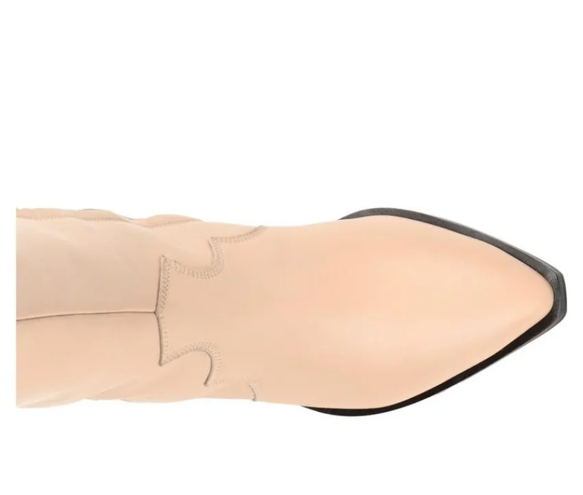 A western-style borrowed from the good old days, the Pryse by Journee Signature. This extra-wide calf boot features genuine leather and a 4 mm Tru Comfort Foam™ footbed for unwavering comfort and support. A low stacked heel, a classic almond-toe, and cowgirl-inspired stitch details finish the design.