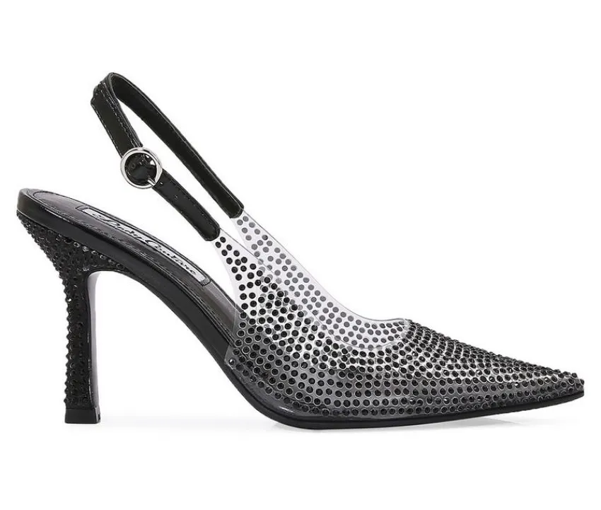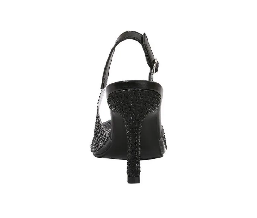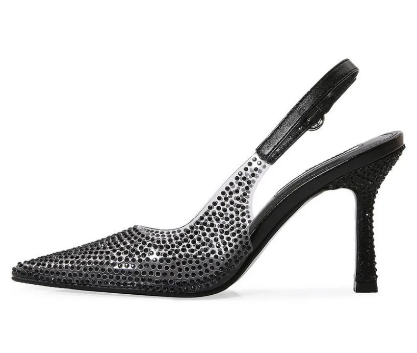 Elegant and eye-catching, these heels bring a sophisticated sparkle to any occasion. Featuring a man-made upper with glittering accents, they’re designed with a pointed toe silhouette and slingback strap for a timeless finish. The high stiletto heel adds graceful height, while the secure buckle closure ensures a comfortable fit from day to night.