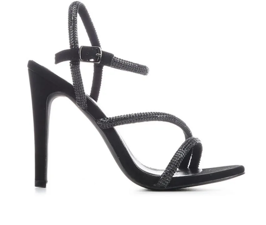 Glamorous sparkle meets sleek design in the Women’s Daisy Fuentes Hope Sandals. Featuring slender straps adorned with rhinestones, this stiletto-heeled sandal brings instant shine to any special occasion look. The adjustable ankle strap ensures a secure fit, while the cushioned footbed helps balance comfort with height. Perfect for evenings out, weddings, or parties, they’re the go-to heels for making a statement.