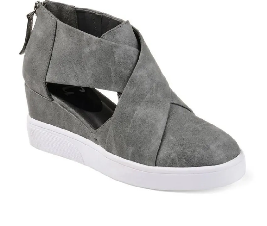 Look effortlessly cool in fashion sneakers from Journee Collection. Soft faux leather uppers display a crisscross design on the vamps and stylish D’Orsay cut-outs at the sides. Thick outsoles and wedge heels create stylish lift to finish the look