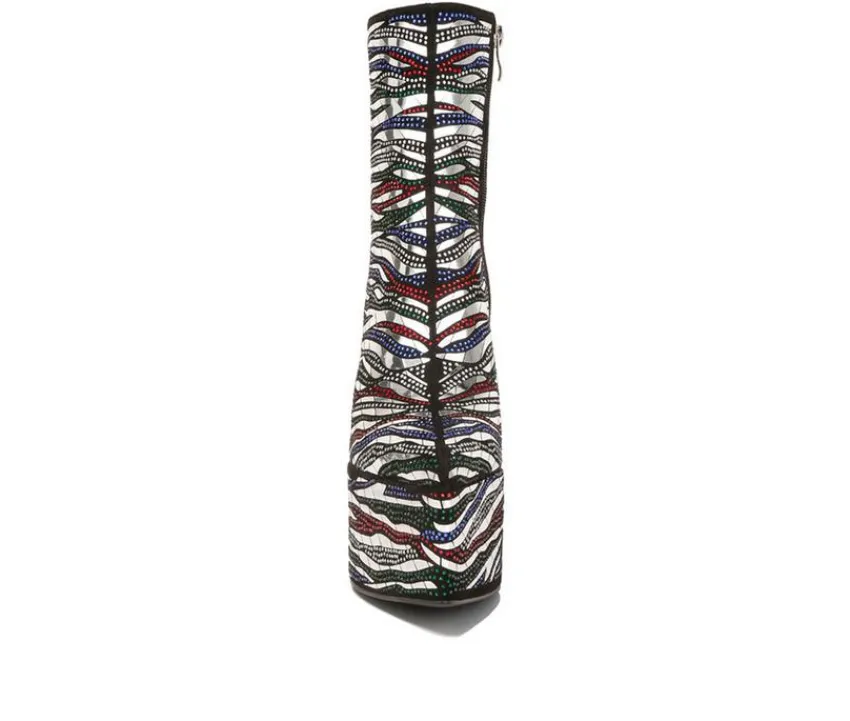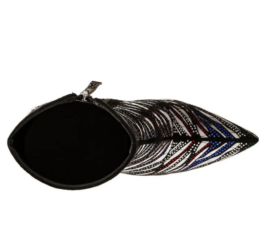Only fun and glamour in these high heeled boots with gorgeous rhinestones and mirror embellishments. The boots are stunning with the patterned embellishments and would look beautiful paired with a biker chic outfit for a night out!
