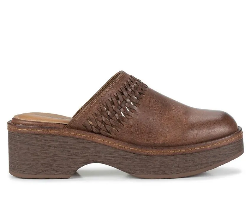 The Sandy Clog combines casual ease with polished detail. A woven vegan upper and cushioned Bubble Tech insole provide comfort and support, while the slip-on design ensures everyday convenience. A lightweight outsole and 2-inch wooden-texture wedge heel add stylish lift. Perfect for pairing with jeans, skirts, or casual dresses.