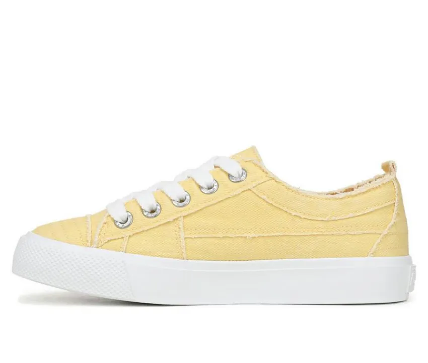 This lace-up sneaker brings casual charm with playful detailing. A canvas upper features floral embroidery and frayed edging for a relaxed finish. Lace-up styling provides a secure, adjustable fit. The round toe keeps the design comfortable for everyday wear. Finished with a platform sole for subtle lift.