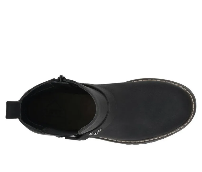 This Chelsea-inspired bootie delivers rugged style with modern updates. Featuring a harness strap detail, stretch gore panels, and a convenient inside zipper, it offers both a secure fit and easy wear. A cushioned insole provides everyday comfort, while the block heel ensures a stable lift. Built for versatility, this boot transitions seamlessly from casual looks to dressed-up outfits.