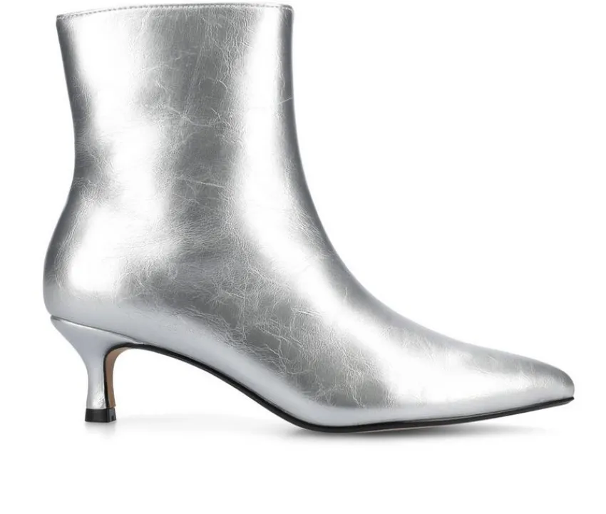 Fall fashion that has a point to make, the Arely bootie by Journee Collection. This kitten-heeled bootie is super chic thanks to the pointed toe and sleek inside zipper. Soft vegan leather and a 4 mm Tru Comfort Foam™ insole make them super comfy. At Journee Collection, our booties will give you that comfortable yet stylish look, perfect for when you’re in the office all the way to a fun night out with the girls.