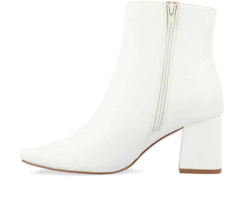 Instantly elevate any outfit with the Haylinn by Journee. This square-toe bootie keeps it effortlessly chic with patent vegan leather uppers. A zipper entry makes them easy to slip into, and a block heel paired with a 4 mm Tru Comfort Foam™ footbed makes them a breeze to walk in. At Journee, our booties will give you that comfortable yet stylish look, perfect for when you’re in the office all the way to a fun night out with the girls.