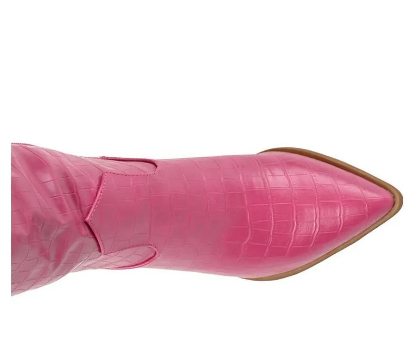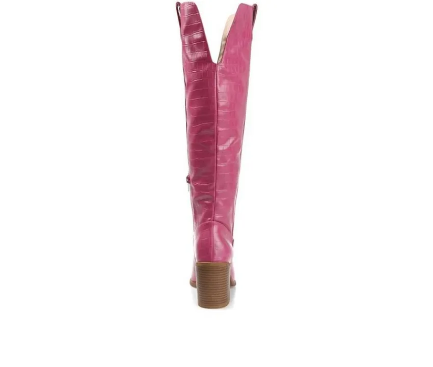 Do you prefer the city or the country? Well, why not embrace both sides with the Therese boot by Journee Collection! A stacked block heel and croc textured vegan leather detail this knee-high boot for a sassy look. This rodeo-inspired design features a wide-calf features a 4 mm Tru Comfort Foam™ insole for supportive and comfortable wear.