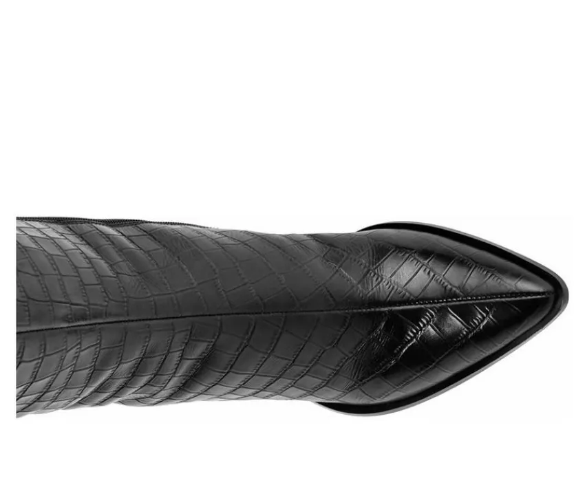 Fearlessly take on a bold look this season with the Laila boots by Journee Signature. This extra-wide calf style features a 4 mm Tru Comfort Foam™ insole and a chunky block heel for a comfortable elevation. An almond-toe and croc textured genuine leather uppers perfect the design.