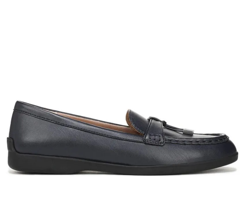 This loafer offers an elegant update with its tailored tassel detail. Crafted with a faux leather or fabric upper and almond toe, it slips on easily while delivering refined style. The low-profile heel and simple lines make it an effortless choice for daily wear.