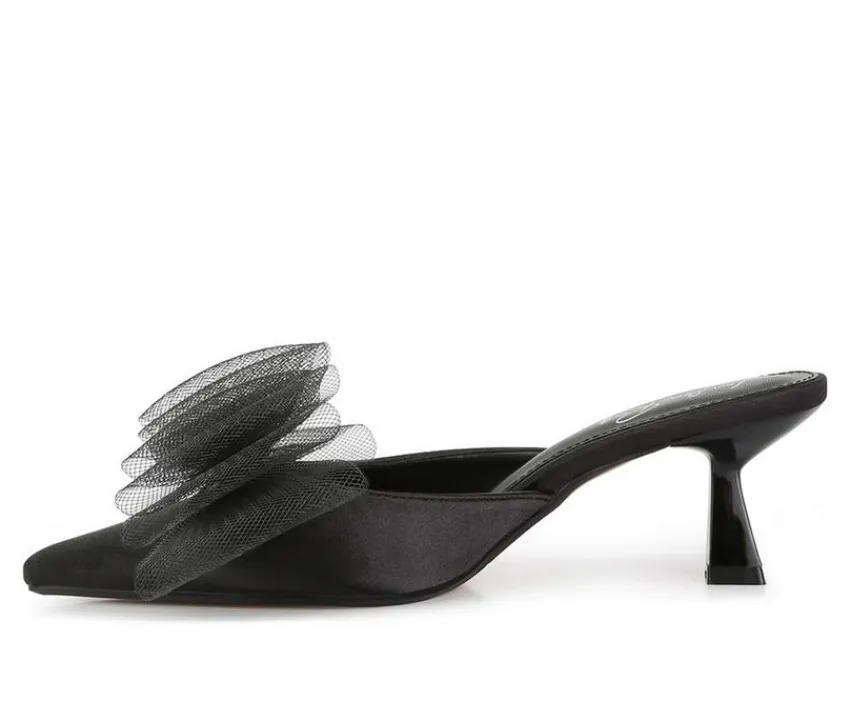 Mules are a classic style that is versatile and pairs well with casual as well as fancy outfits. These organza bow embellished mules exhibit a classy and stylish vibe while also giving a relaxed fit with the soft cushion insole.