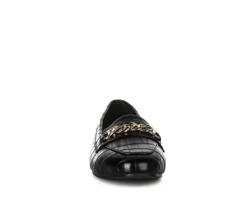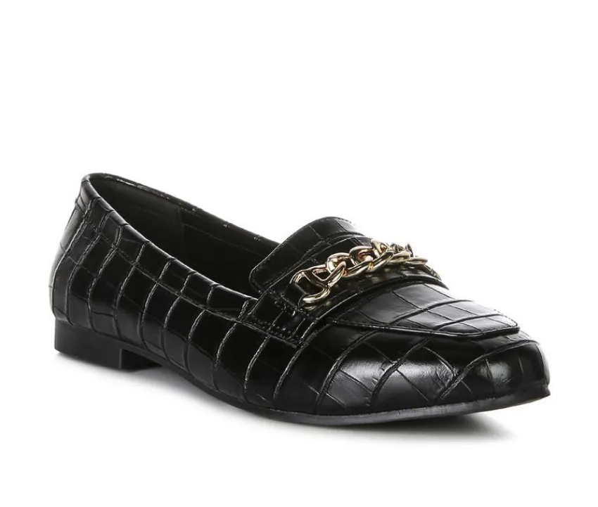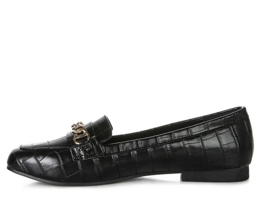 Walking these incredibly stylish croc textured loafers is a treat. For the experiemntal you, this can be a great workwear addition. Crafted in great quality and finish, the super comfortable womens shoes have chunky metal chain detail on top strap. The loafers have a cushion insole which offers comfort and cuts strain.