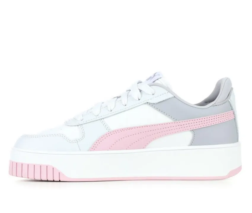 The Puma Carina Street Sneakers are crafted to complement your casual look with a touch of retro-inspired style. The synthetic leather upper offers a clean and sophisticated appearance, while the perforated Puma Formstrip adds a sporty element. The chunky platform sole not only provides a fashionable boost but also ensures a comfortable stride.