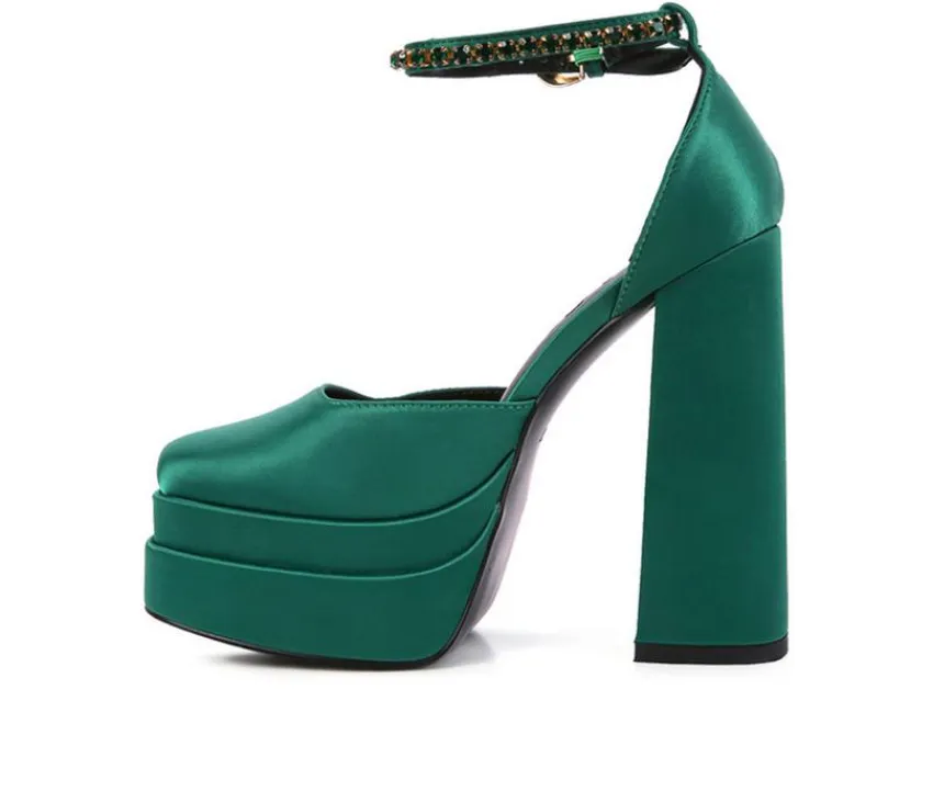 Channel your inner supermodel as your feet find these super-premium satin sandals built on raised platforms which give it additional height apart from the block heels. It comes with two ankle straps for you to choose from: one with rhinestones and another to keep it just simple! The soft cushion innersole has soft padding and cuts stress. It has an ankle strap with pin buckle closure which secures your feet well and decorates your ankle with the diamante rhinestone details. Outer material: Satin. Lining Material: Leatherette. Outer Sole: Rubber. Closed Square Toe. High Heeled Sandals. Comes with *two* ankle strap options! High Quality and Durable Construction. Diamante Detail. Soft Padded Innersole. Casual High Street Style. RCSH3150.
