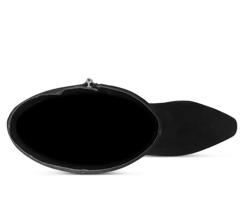 Step out in timeless sophistication with these chic knee-high boots designed for all-day confidence and comfort. The soft synthetic upper creates a smooth, refined silhouette, while the pointed toe and mid-height heel offer a touch of elegance. A full side zipper ensures easy wear, and the cushioned insole provides lasting support. Perfect for pairing with dresses, skirts, or slim pants for a polished finish.