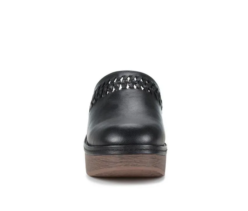 The Sandy Clog combines casual ease with polished detail. A woven vegan upper and cushioned Bubble Tech insole provide comfort and support, while the slip-on design ensures everyday convenience. A lightweight outsole and 2-inch wooden-texture wedge heel add stylish lift. Perfect for pairing with jeans, skirts, or casual dresses.