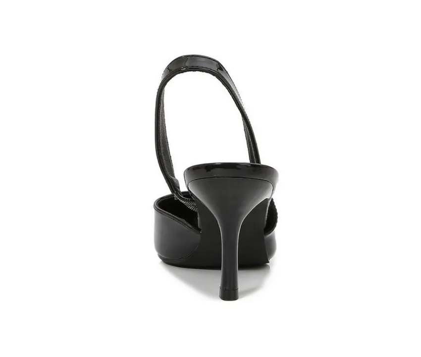 Effortlessly refined, this pointed-toe slingback stiletto brings timeless elegance to any ensemble. Designed with a clean, sculpted silhouette and a slender mid heel, it adds just the right amount of height without compromising comfort. Whether finished in high-shine, sleek solids, or playful animal print, this silhouette transitions seamlessly from work to after-hours.