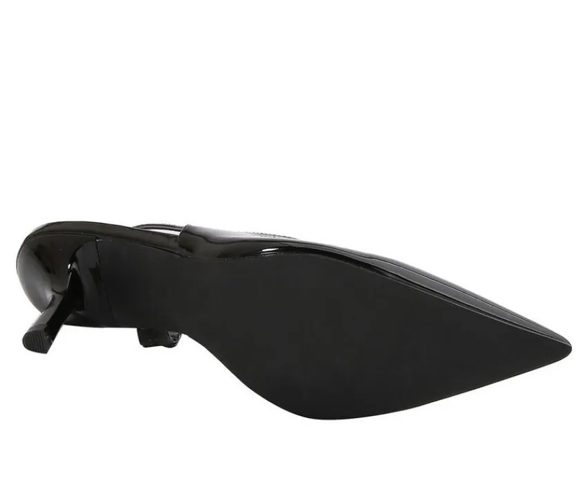 - Glossy or textured upper with a sharp pointed toe for a sleek silhouette