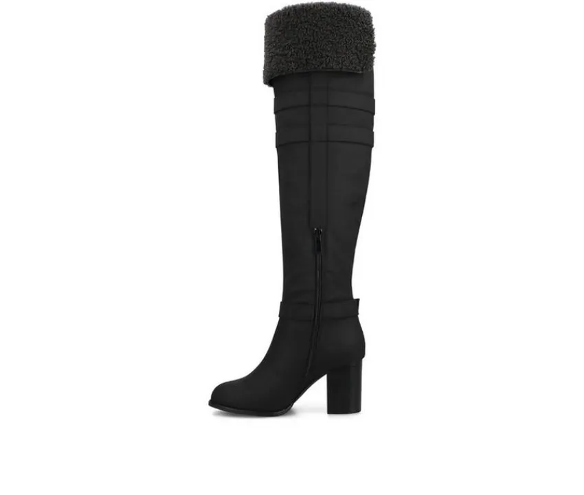 Bring bold style and cozy comfort together with these over-the-knee boots designed for standout wear. Crafted with a smooth upper and finished with a plush sherpa cuff, they deliver warmth and fashion all in one. The tall shaft is accented with sleek strap and buckle details, while the sturdy block heel adds confident height. With a full-length inside zipper, these boots are easy to slip on and perfect for dressing up cold-weather looks.