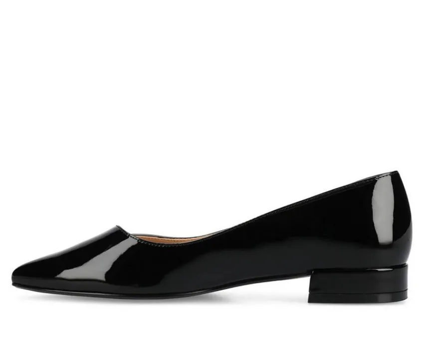 The Carmin women’s dress flat in wide-width from Journee features a sleek, slip-on design with a pointed-toe for a modern look. The modern block heel offers just the right amount of height for comfortable wear, while the cushioned footbed ensures all-day support. This women’s heel effortlessly blends style and comfort for all-day wear.