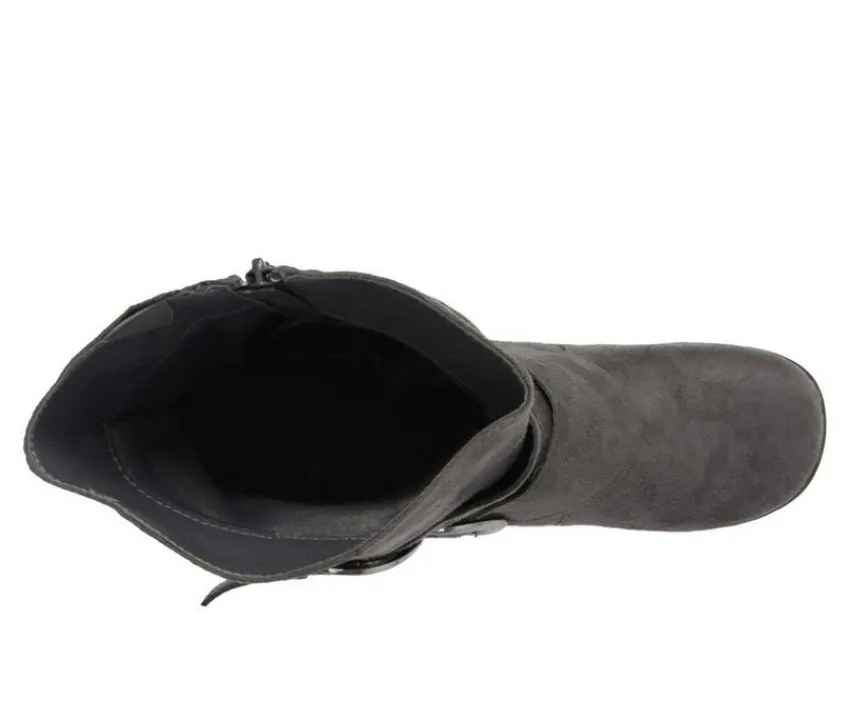 Step into trend-setting style with the Jester-01 flat buckle boots by Journee Collection. These must-have winter boots feature smooth faux suede uppers with a subtle slouchy style that rises to a mid-calf height.